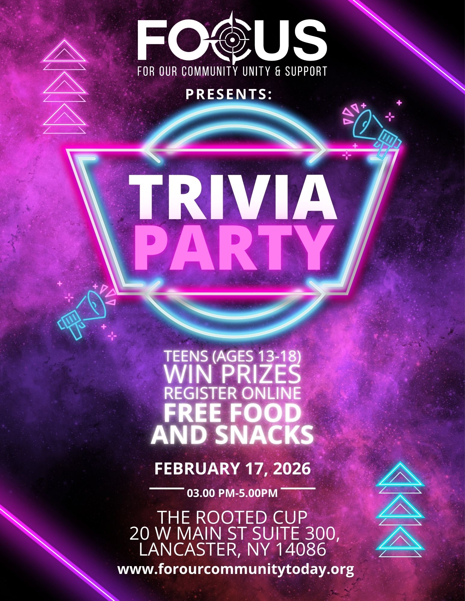 Compete in teams in this trivia party at the latest social club in downtown Lancaster. Win Big Prizes. Free food and snacks. (Ages 13-18 on...